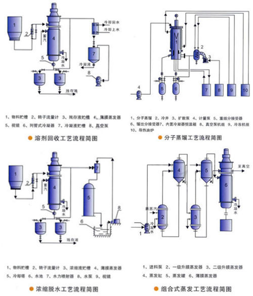 Thin film evaporators can be used for chemical unit operations such as material concentration, degassing, desolvation (solvent recovery), purification, etc. The following processes are available for reference: